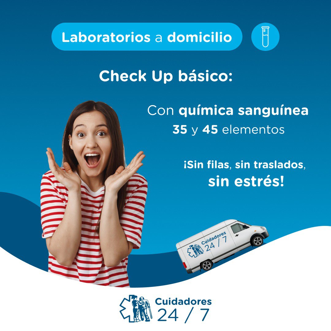 - Servicio de estudios de laboratorio a domicilio, por medio de nuestra alianza comercial con Pro+lab ponemos a su disposición estudios de laboratorio a domicilio. Consulte con un asesor los análisis clínicos que requiere para aplicar las promociones que Cuidadores 24/7 ofrece.